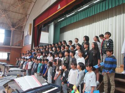 来週の校内音楽会、音楽発表会に向けて、学校の中は今音楽があふれてます。「学校っていいところだなあ。」と思う日々です。2年生の朝の会では、2クラス合同で歌の練習が始まりました。1組のO先生の指揮に合わせて、歌います。2年生が美しい声で歌っているのを聴くと、ついつい鼻の奥がツーンと来てしまいます。来週が楽しみですね。