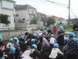 みんなの心がひとつになった「すいかわり」。担任の先生も、支援員の先生もみんなで応援です。「おしい!」。みんなのリアクションのかわいいこと。ゲームに見えるかもしれませんが、こうやって右・左を覚え、わかりやすい短い指示を出す。そして仲間を応援しあう。45分間に学びがいっぱいです。全員3回ずつやっても割れなかったそうですよ。3回目はみんなおしかった・・・。クラスが仲良しなこと、伝わりますか?