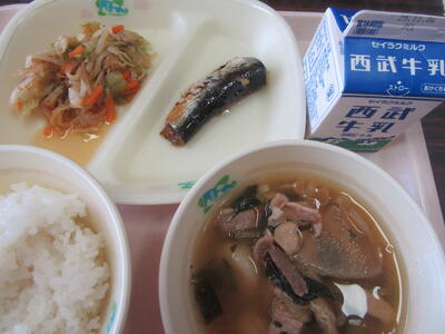 今日の給食は、ごはん、イワシのうめに、おかかあえ、すいとん、牛乳でした。イワシのうめには骨も柔らかく丸ごと食べることができます。配膳員さんが、「子どもたち、全クラスお魚をよく食べていました。えらいですね。」とおっしゃっていました。配膳員さんもうれしいですし、きっと給食を作ってくださる給食センターの方もうれしいでしょうね。