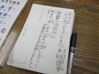 図書室には、「山小版!子どもの本総選挙」の投票用紙と、投票箱がありました。