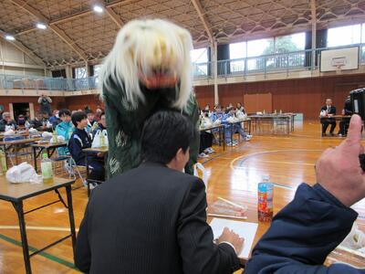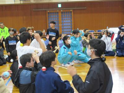 中学生も一緒にけん玉を楽しみました。素敵なお祝いの会になりました。ありがとうございました。