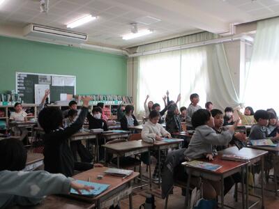 今日は、6年3組の最後の外国語の授業でした。前のめりになりながら、外国語専科のY先生の読み聞かせを聞いている6年生の背中がありました。なんと素敵な授業なんだろう・・・。