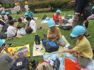 お弁当タイムもみんなとってもうれしそう。おやつタイムではおすすめおやつを教えてもらいました。たくさん歩きましたけれど、いっぱいの思い出をおみやげに帰ったと思います。遠足の準備ありがとうございました。