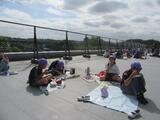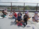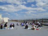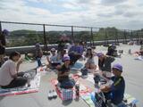 4年生は、今日遠足の予定でしたが、tetoruにてお知らせしたとおり、飯能市に熊の目撃情報があったため、延期になりました。お弁当を作っていただいていたので、4年生の先生方の発案で屋上で食べました。青空の下、非日常の体験となりました。いい思い出になったでしょうか。保護者の皆様、お弁当の準備もありがとうございました。、むらさき帽子の4年生、みんなとっても仲良しです。