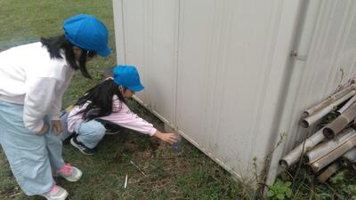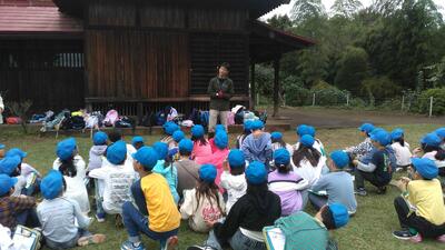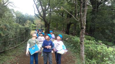 3年生 生き物ふれあいの里センターでの活動 投稿: 山みどり (06:51) 15日(水)3年生は「生き物ふれあいの里センター」へ行きました。 丘の上で虫の音、鳥の声、風の音などいろいろなものの音を感じ、自然の素晴らしさに気づきました。 荒幡の富士に登り、周りの景色を見ました。 トンボ、バッタなどを観察しながら学習を深めました。 最後にセンター職員の方からのクイズ 「カブトムシの胸はどこでしょう?」お子さんと答えを確認ください。 Tweet -