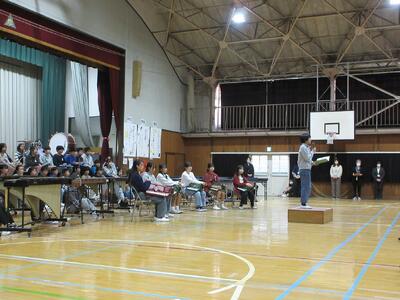 親善音楽会で歌った「COSMOS」は、ソプラノの美しい声をアルトが支えて、体育館が宇宙の中のよう。合奏は、難しいリズムを指揮者が支えていました。ソロや振り付けもかっこよかったですね。体育館に観客の手拍子も響きました。