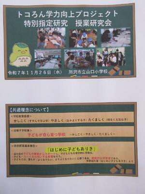 職員室前の掲示 校内研究写真ハイライト