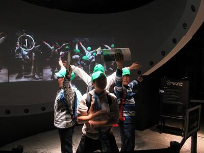 科学技術館では、お弁当を食べたあと、グループ行動です。もののしくみをさわったり、これからの未来の科学を体験したり、シャボン玉の中に入ったりと、みんな心ゆくまで楽しんでいました。