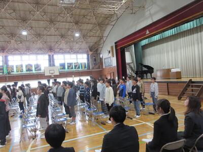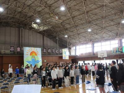 卒業式予行練習 投稿: 山みどり (03/18) 3月18日(水) 今日は卒業式の予行練習でした。本番通りの時程で関係教職員が集まり、在校生代表として5年生が参加してくれました。84名の6年生の皆さん、大切な名前を担任の先生に呼名してもらえるのもあとわずか。堂々と受け取ってほしいと思います。別れの言葉も伝わるように、気持ちを届けてください。卒業式は、これまでの6年間の小学校教育の集大成。5年生の皆さん、しっかり見ておいてくださいね。 -