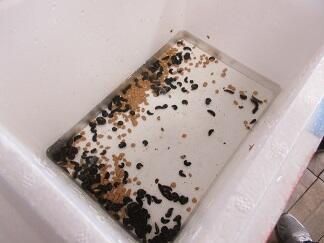 教頭先生と一緒に育てたホタルの幼虫の放流