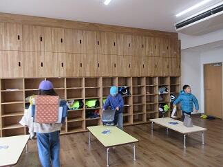 奥の部屋にロッカーがあります。みんな自分のロッカーに荷物をしまってから遊びます。